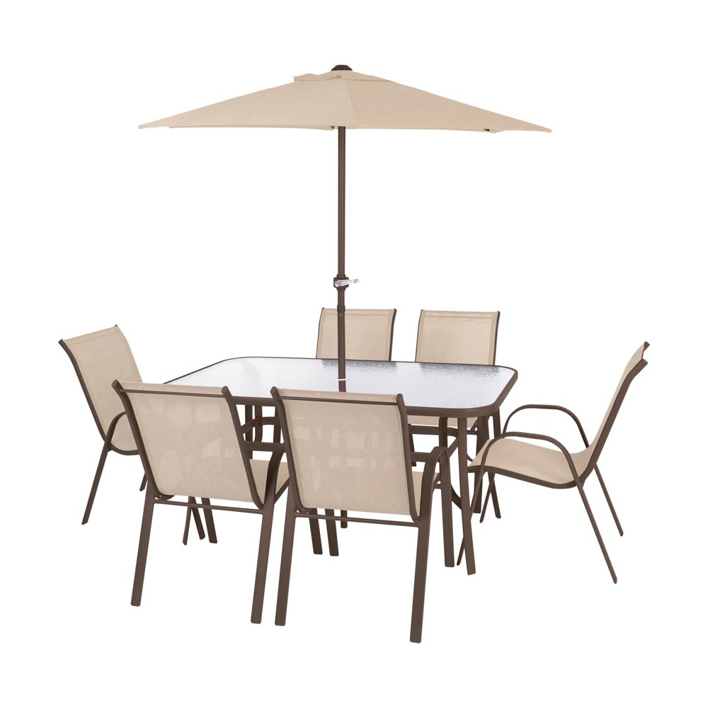 garante durabilidade, enquanto o tecido textilene das cadeiras e